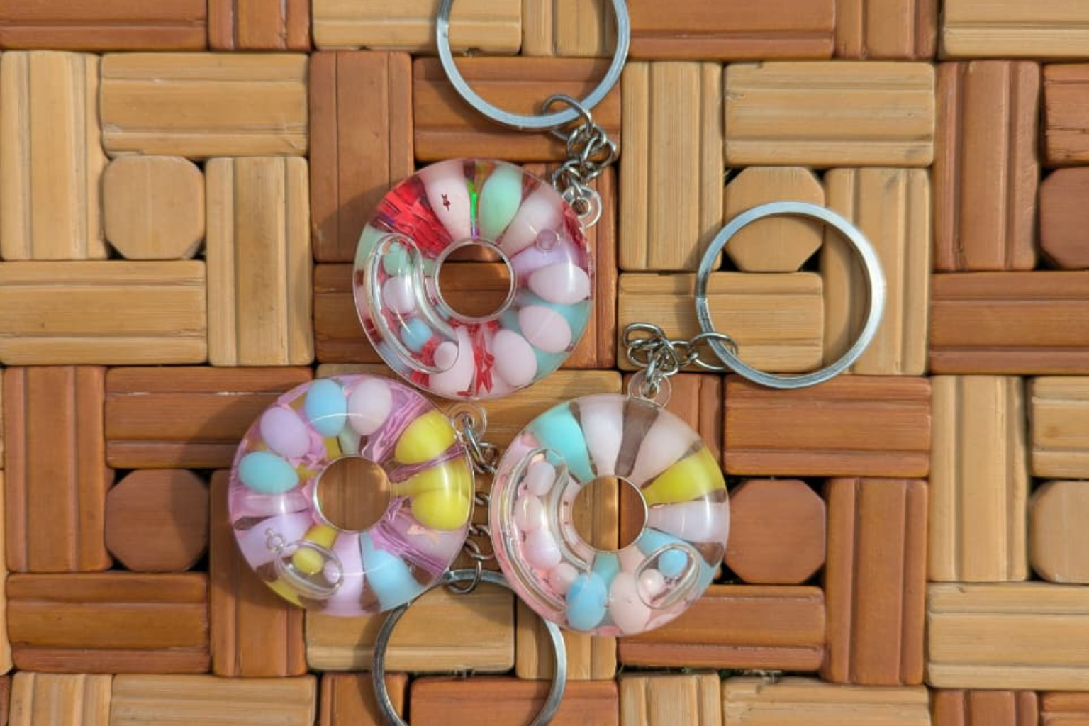 Make your keys look adorable with this Cute Donut Shape Keychain, designed with colorful pastel beads sealed inside a glossy resin donut. Lightweight yet durable, this keychain is perfect for daily use or as a fun gift.